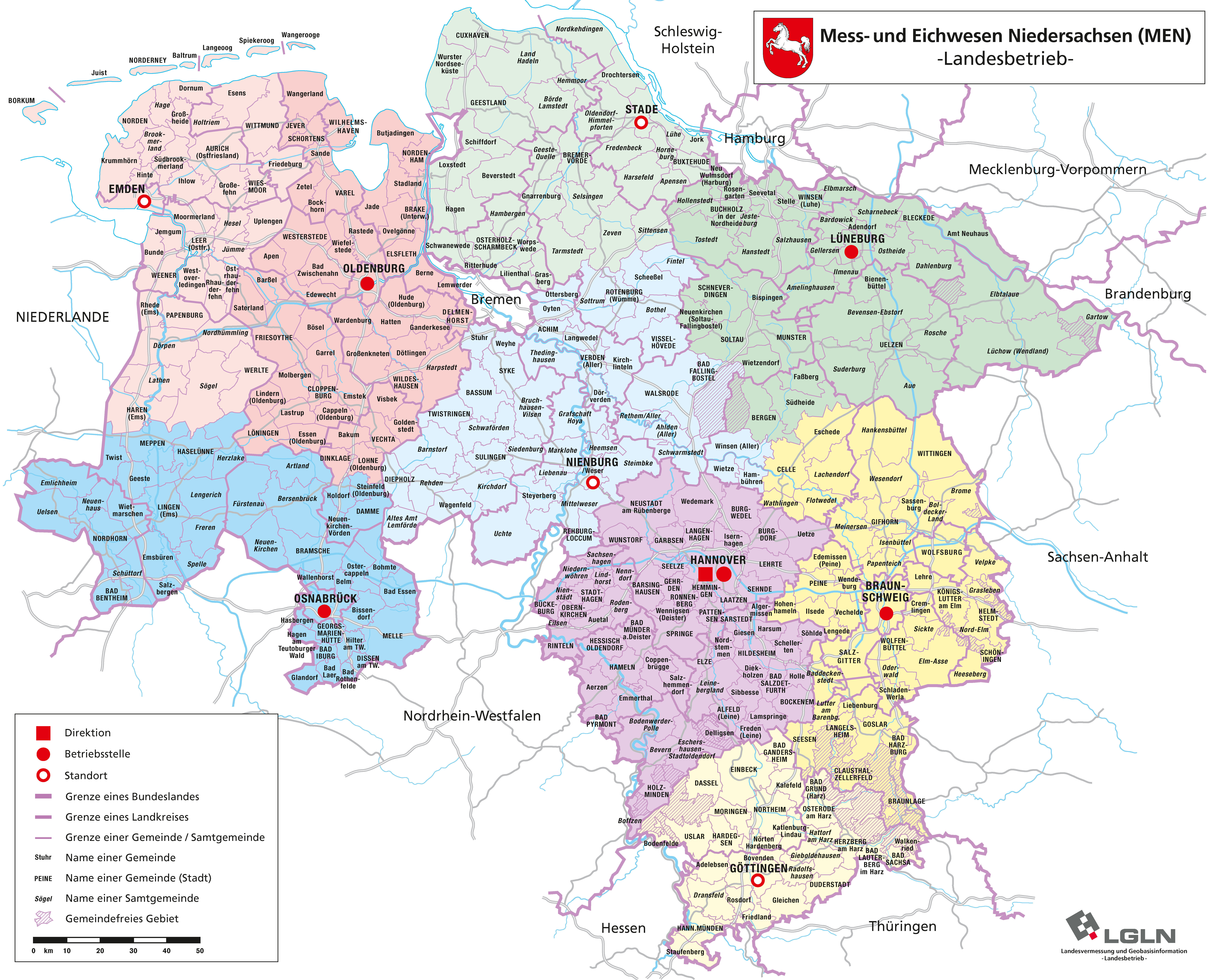 Standorte des Mess- und Eichwesen Niedersachsen