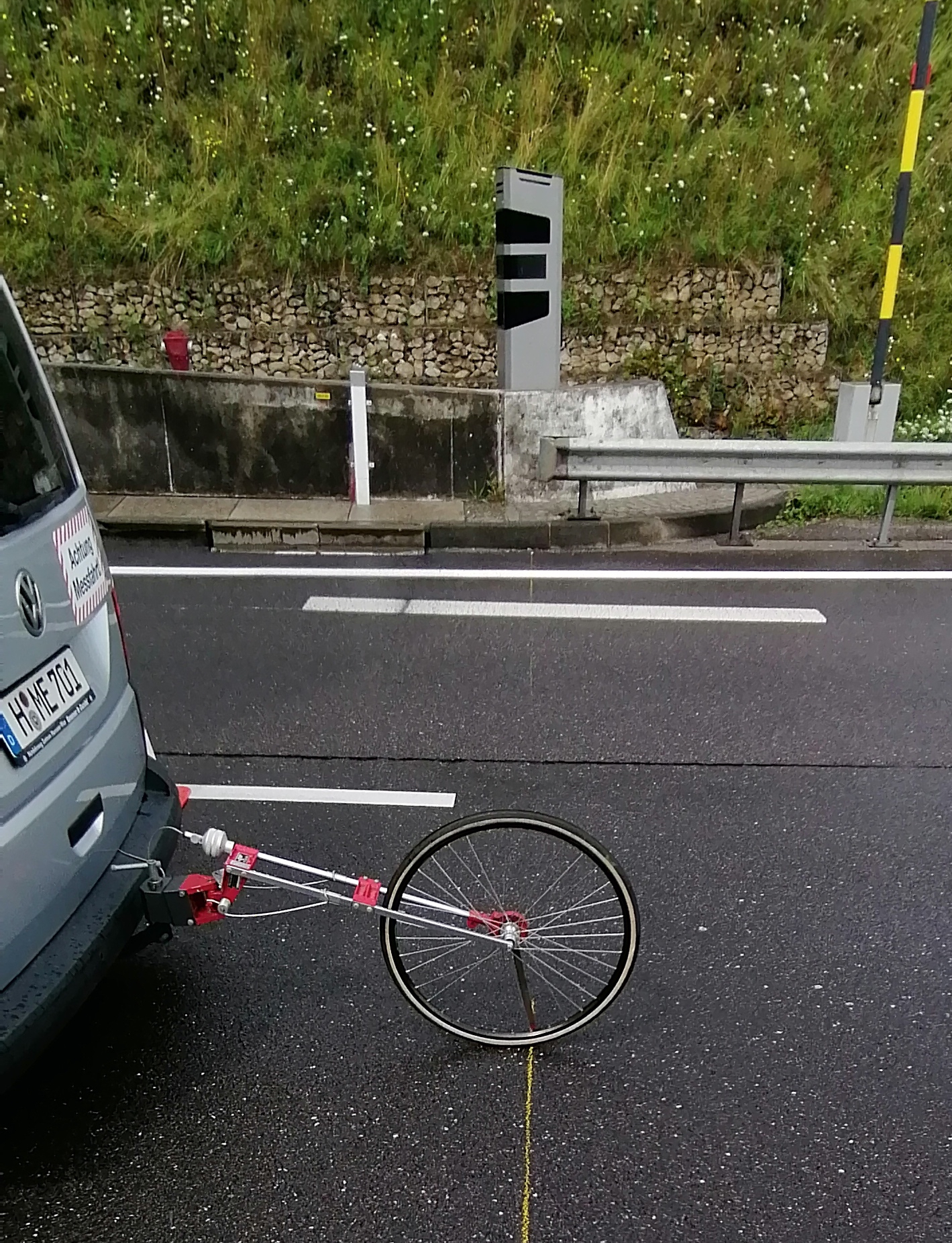 Die Streckenvermessung erfolgte von Mitarbeitern des MEN am 3. August 2021 während jeweils einspuriger Sperrung mit einem sogenannten Peiseler Schlepprad, siehe Abbildung. Das Peiseler Rad ist eine Längenmesseinrichtung, mit der die Wegimpulse beim Abrollen des 18 Zoll-Rades ähnlich wie bei einem klassischen Radsensor im Kraftfahrzeug von einem mechanischen Wegimpulszähler mit einer Messauflösung von 1 cm erfasst und angezeigt werden. Die Kalibrierung des Impulszählers erfolgte anfangs anhand einer separat exakt ausgemessenen Referenzmesstrecke.