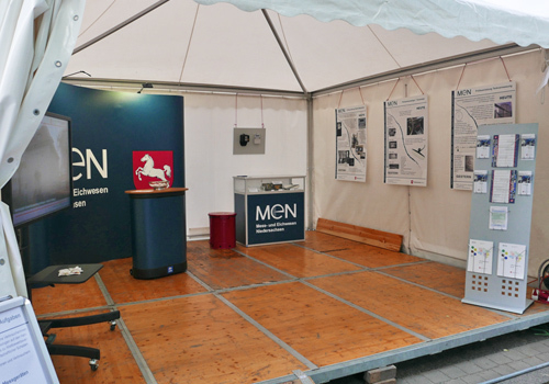Das MEN war Teil der Landesmeile des Tags der Niedersachsen am vergangenen Wochenende in Hannover. Auf der Landesmeile - mit Blick auf den Maschsee - bildete der Stand des MEN mit dem benachbarten Stand des Landesamtes für Bergbau, Energie und Geologie (LBEG) einen großzügigen „Hof“, der Raum für Gespräche und Ausstellungsstücke bot.